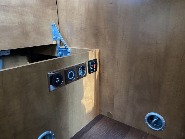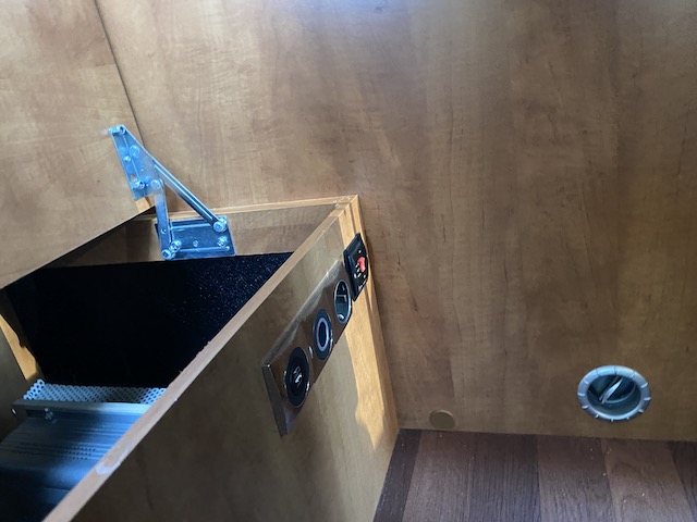 Die neue 230 Volt Steckdose in der Sitzbank ist direkt am Spannungswandler angeschlossen.