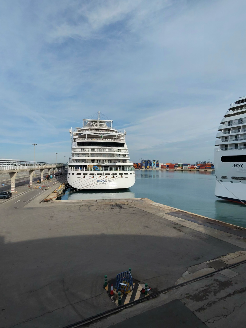 Am Morgen legte die AIDAluna sanft im Hafen von Cartagena an. 17 Grad, milde Wintersonne, dieses klare Mittelmeerlicht, das alles ein wenig freundlicher aussehen lässt. Nach einem entspannten und wie immer hervorragenden Frühstück im Rossini gingen wir von Bord. Kein Ausflug, kein Bus, kein Zeitdruck – die Stadt beginnt praktisch direkt hinter dem Hafentor, keine fünf Minuten zu Fuß. Luxus in seiner unauffälligsten Form.