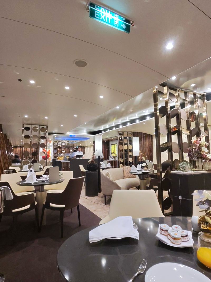 Ein echtes Highlight war das Theatrium. Nach der Werft präsentierte es sich offen, modern und einladend. Die Kombination aus Bühne, Bars und Sitzmöglichkeiten wirkte großzügig und lebendig. Auch die gesamte Ausstattung des Schiffes überzeugte: geschmackvolle Materialien, klare Linien und viele kleine Details, die zeigten, wie viel Wert auf Atmosphäre und Komfort gelegt wurde.