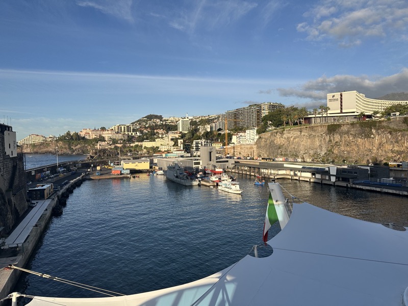 Ab nächsten Morgen erreichen wir Funchal. Funchal ist die Hauptstadt der portugiesischen Insel Madeira, die im Atlantischen Ozean liegt. Die Stadt ist bekannt für ihr mildes subtropisches Klima, ihre malerische Lage in einer Bucht umgeben von Bergen und ihre reiche Geschichte. Hier sind die wichtigsten Merkmale von Funchal: