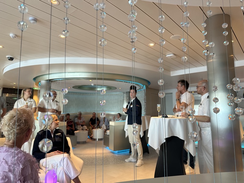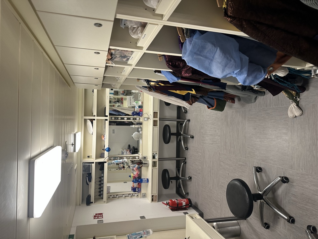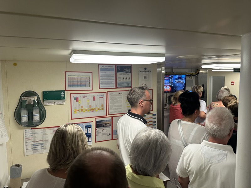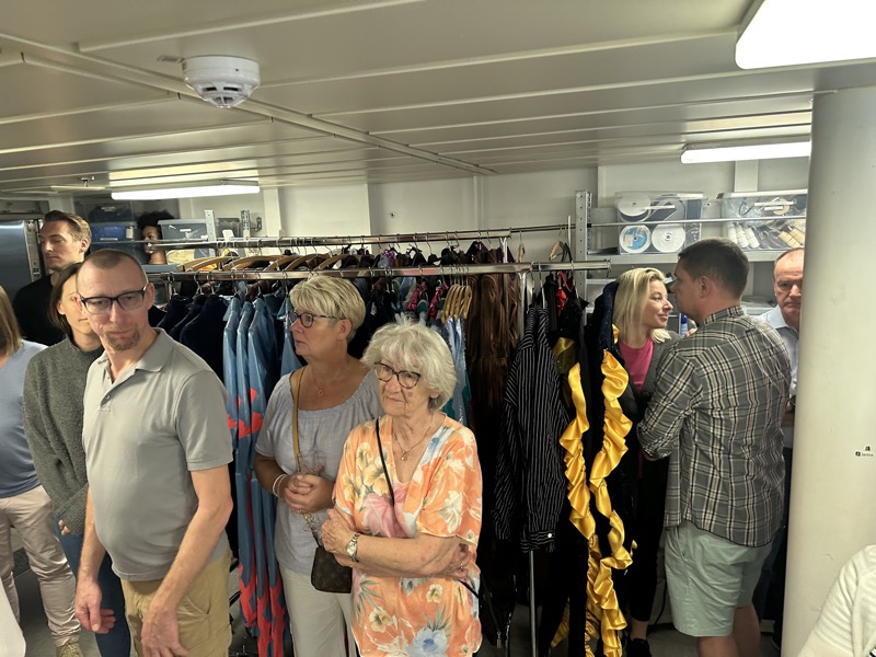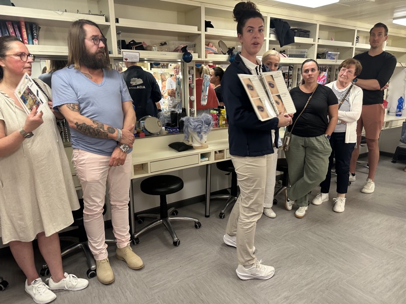 Für die Suiten-Gäste hatte AIDA sich als kleines Highlight eine Theaterführung angeboten. Nach einer Begrüßung mit Umtrunk und Fingerfood ging es hinter die Kulissen des Theaters.