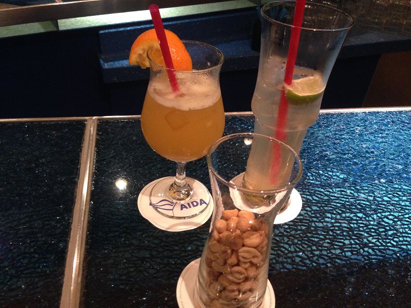 Mittlerweile hat es sich zur Tradition bei uns entwickelt, dass wir am ersten Abend immer eine Cocktail in der AIDAbar trinken und auf unseren Urlaub anstoßen.