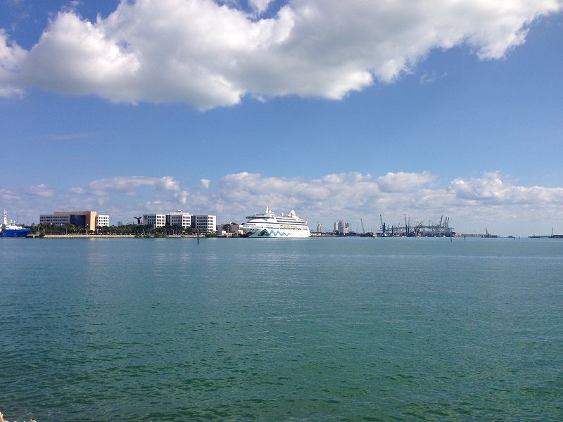 Die Route wurde das erste mal von Aida gefahren und war somit Premiere. Die Tour und die ausgewählten Ziele sind toll. Aber, in Miami sind die Behörden so hart, dass jeder Gast bei der Abreise persönlich mit seinem Gepäck bis 10 Uhr durch den Zoll durch muss. Anschließend darf das Schiff aber nicht mehr betreten werden und somit steht jeder Gast spätestens um 10 Uhr im Terminal. Dabei ist es völlig egal ob der Rückflug um 13 oder um 21 Uhr startet. Aida hat uns den Vorschlag gemacht doch noch etwas Miami zu erkunden, leider war der erste Weihnachtstag und alle Geschäfte geschlossen.