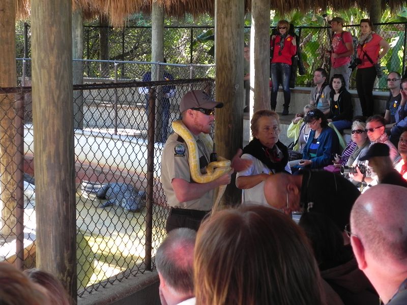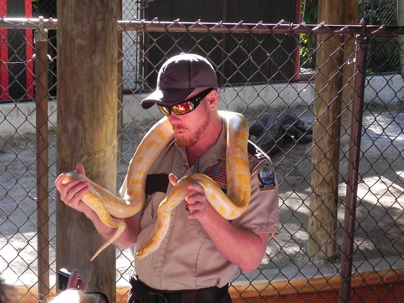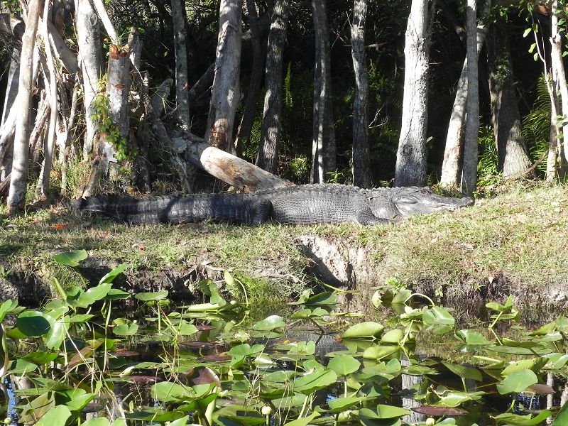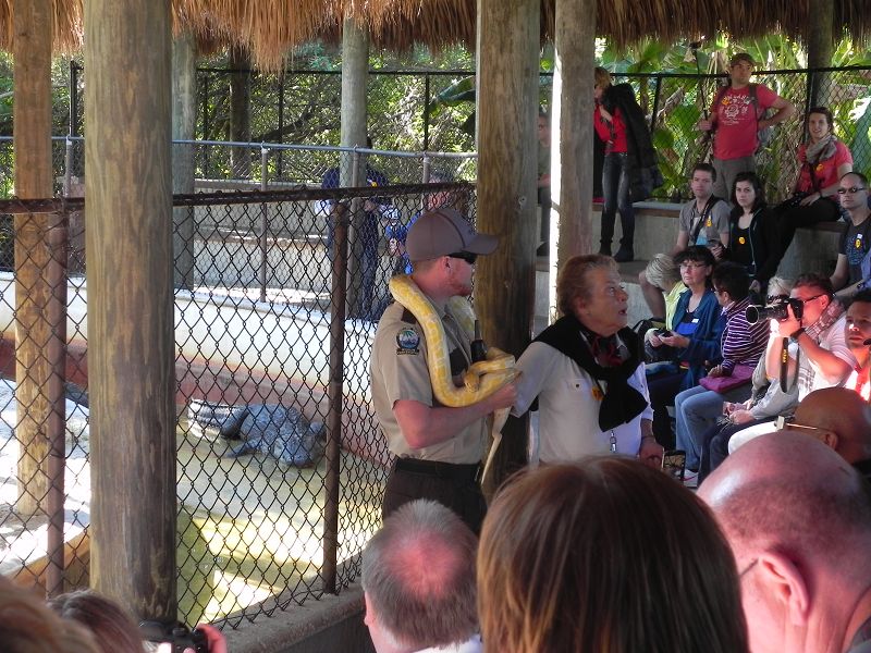 Auf unserer einstündigen Tour konnten wir sogar Alligatoren sehen, manche schwer zu entdecken, andere lagen auch in der Sonne. Auch andere Tiere konnten wir auf unserer Fahrt durch die Everglades bestaunen. Nach der Tour ging es weiter zu einer kleinen Show bei der uns die Unterschiede zwischen Krokodil und Alligator erklärt und gezeigt wurde.