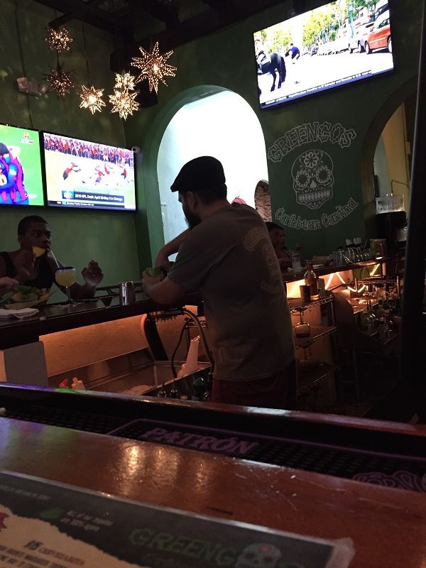 Das Restaurant erweckte für uns aber einen zu hohen Anspruch, so machten wir nur schnell einige Bilder und suchten uns eine andere Cocktailbar. Gefunden hatten wir die Bar Greengos, und das noch zu happy Hour. Pro Cocktail fünf Dollar.