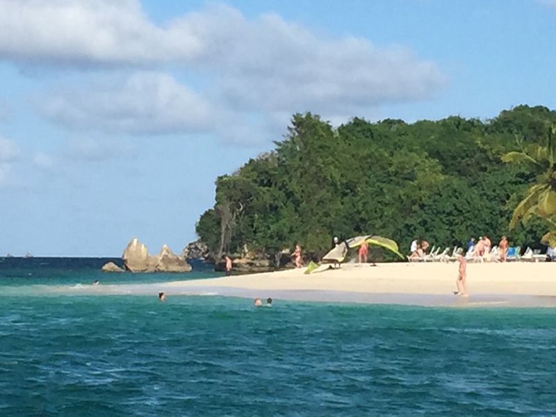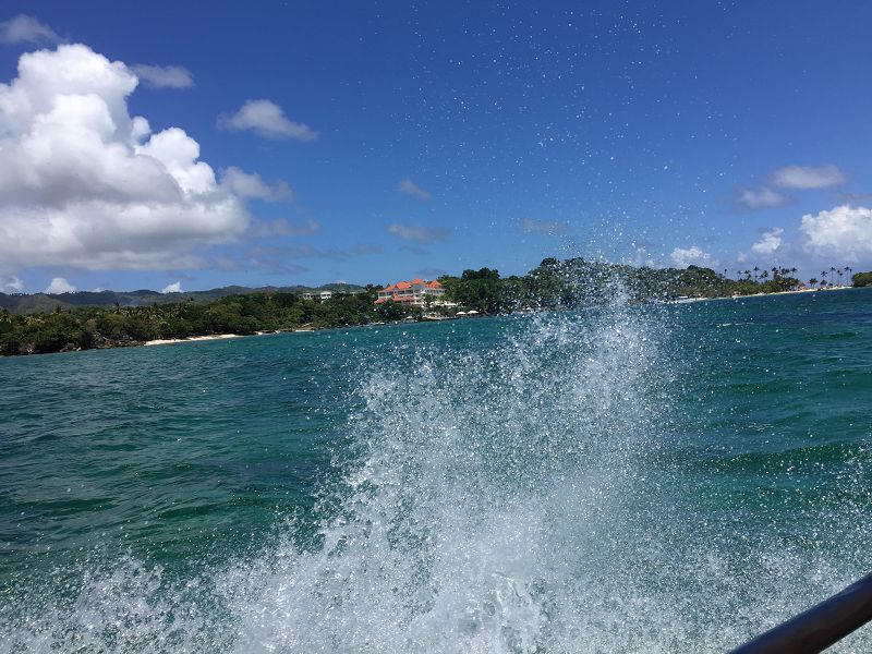 Den meisten Passagieren wurde schlecht und eine Frau hat die gesamte Zeit sich nur noch übergeben. Obwohl einige Passagiere die Rückfahrt zur Insel gefordert hatten und unser Einheimische Guide dem auch zustimmte, befolge der Kapitän des Schiffes dem nicht und suchte weiter. Hier hat klar ein Scout von AIDA gefehlt. Nach fast zwei Stunden konnten wir dann auf der Rückfahrt noch einige Wale direkt am Boot beobachten. Es ging dann mit Vollgas zurück zum Strand, auf die Bacardi Insel. Ein traumhafter Strand, so wie man sich das Paradies immer vorstellt, warmes Wasser, Sonne und weißer Strand. Die eine Stunde am Strand verging viel zu schnell und so ging es um 16.30 Uhr wieder zur Vita.