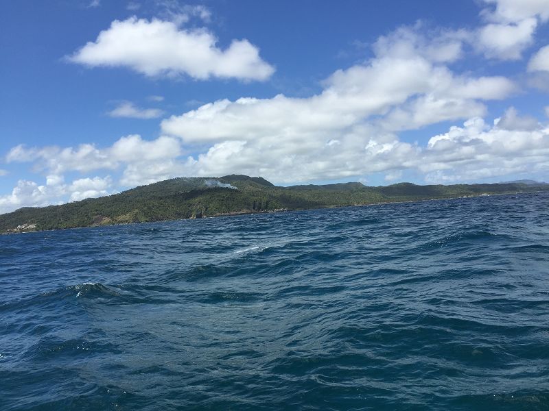 Am 26.3 liefen wir morgens in der Bucht von Samana ein und die meisten Passagiere hielten schon jetzt Ausschau nach Walen. Hier hatten wir den Ausflug "SMN21" "Walbeobachtung mit Strand" gebucht. Mit unserem ca 11 Meter Boot ging es mittags raus auf die mittlerweile raue See.