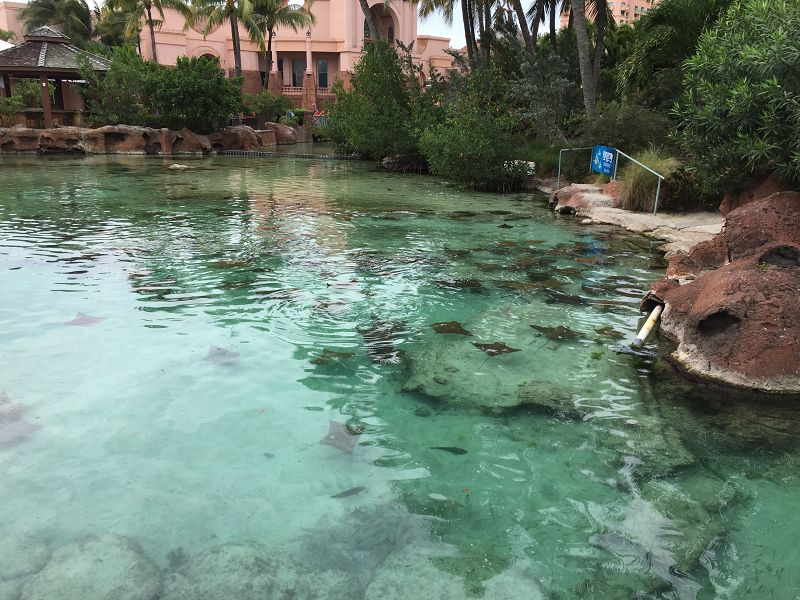 Einen Ausflug haben wir hier nicht gebucht sondern alles auf eigene Faust. Unser Ziel war das Hotel Atlantis. Zu viert haben wir uns ein Taxi genommen uns sind zum Hotel Atlantis auf Paradies Island gefahren. Preis Pro Person 4 Dollar. Die Eintrittspreise in den Park sind enorm hoch. Das Aquarium kostet 42 Dollar pro Person, Strand 75 Dollar und alles zusammen 150 Dollar. Die Aquarium Welt zog uns gleich in ihren Bann. Rochen, Haie und sonstige Tierarten aus dem Wasser schwammen um uns herum. Die Hotel Anlage ist riesig groß und weitläufig. Eigene Strände, ein Casino, Shops und immer wieder Becken mit Fischen.