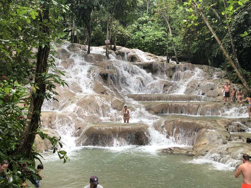 Unser erster halt waren die Dunn's River Falls. Dies sind 180 Meter hohe terrassenförmige Wasserfälle mit Lagunenpools.