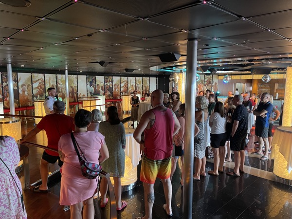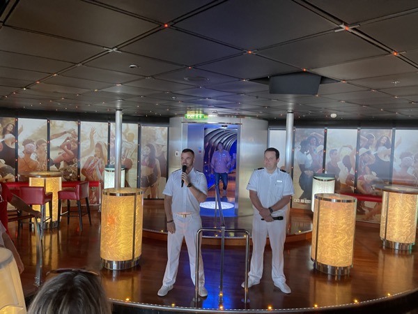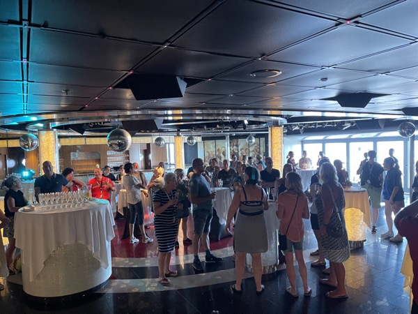 Am ersten Seetag fand das AIDA-Fantreffen statt. Pünktlich um 11 Uhr trafen sich über 50 Fans in der Anytime Bar zusammen mit einigen Offizieren zu einem Umtrunk