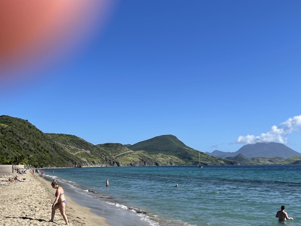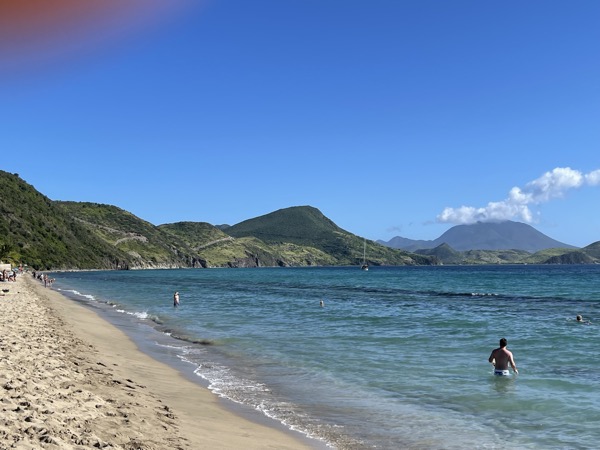 Mittwoch erreichten wir St.Kitts. St. Kitts ist Teil des unabhängigen Staates St. Kitts und Nevis und liegt im östlichen Teil der Karibik, etwa 2 Meilen südöstlich von St. Eustatius und etwa 50 Meilen westlich von Antigua. Wir hatten uns mit 4 anderen AIDA-Gästen zusammen getan und haben uns vor dem Terminal ein Taxi zum schönsten Strand von St.Kitts genommen. Der Carambola Beach ist ein malerischer Strand auf der Insel St. Kitts, der für seine natürliche Schönheit und entspannte Atmosphäre bekannt ist. Am Strand können Liegen und Schirme gebucht werden. Kosten für 2x Liegen und einem Schirm 30,- Dollar.