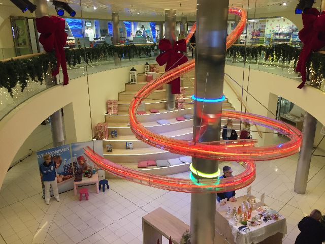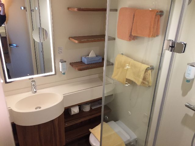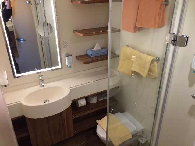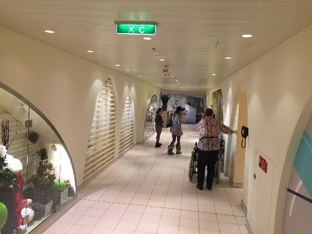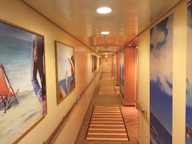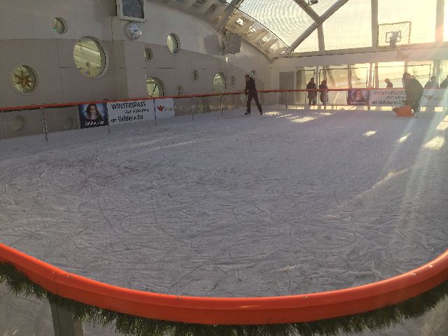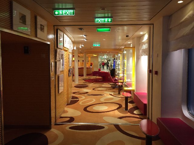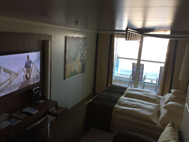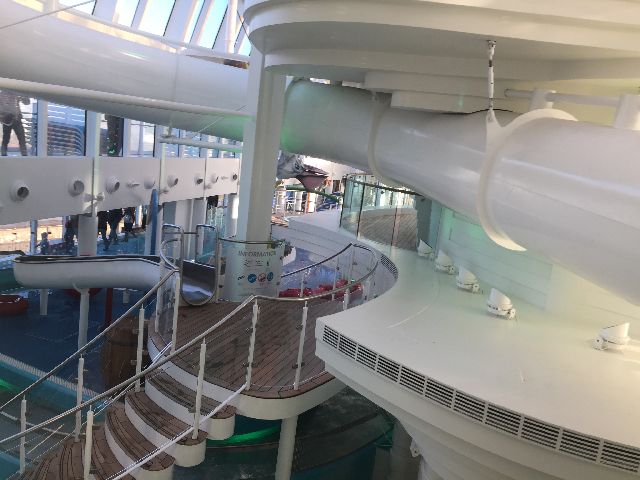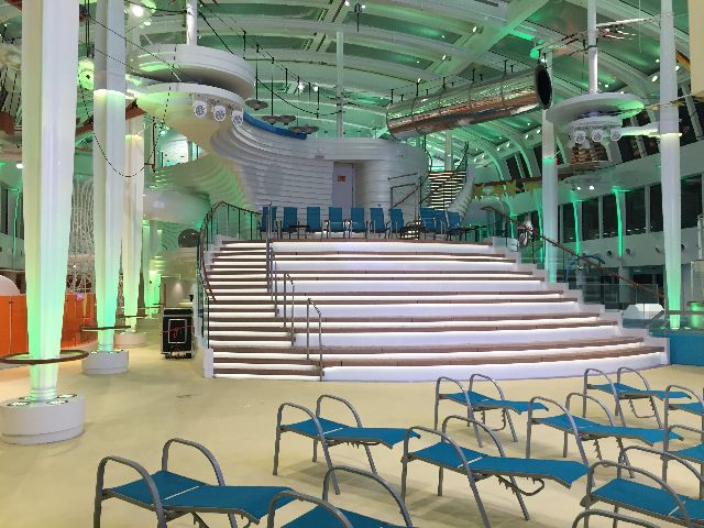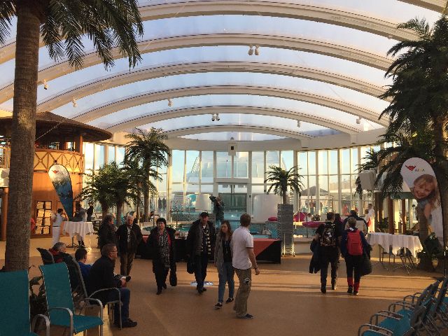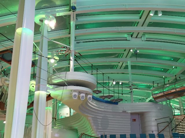 Der erste Eindruck war schon überwältigend, die große Eingangshalle. Kabine 14106 war schon fertig und freigegeben, so ging es direkt dorthin. Anschließend wurde dass Schiff erkundet. Das neue Vergnügen: Eine Schlittschuhlaufbahn und ein Hochseilgarten.