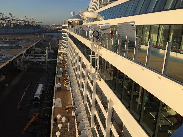 Im Dezember war es endlich soweit, wir hatten unsere erste Reise mit der AIDA-Prima. Anreise verlief reibungslos mit dem Auto und vorab hatten wir uns schon über AIDA den Parkplatz direkt am Terminal gebucht. Auto abstellen und keine 100 Meter weiter liegt das Schiff. Beeindruckend.