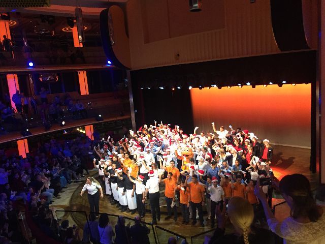 Nicht vergessen möchte ich die Eisbahn auf Deck 16 und den Klettergarten. Es ist schon ein Erlebnis im 16 Stock über den Köpfen der anderen Passagiere zu klettern.