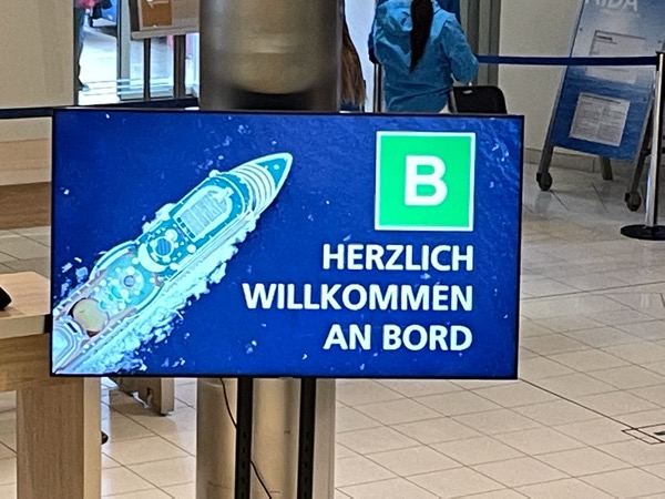 Gemütlich fuhren wir am Samstagvormittag von Hannover nach Hamburg, mit dem Auto keine 2 Stunden. PKW direkt am Terminal auf dem Parkplatz (vorher über AIDA Reserviert 7 Tage = 109,- Euro) ab. Keine 100 Meter weiter wurden unsere Koffer durch AIDA in empfang genommen und wir konnten zum Check-In gehen.