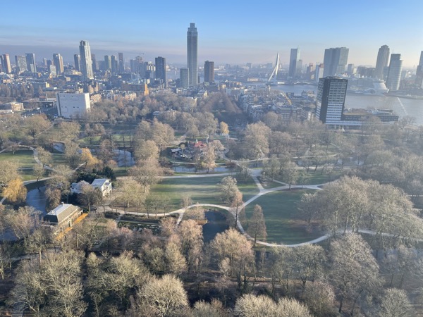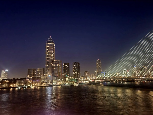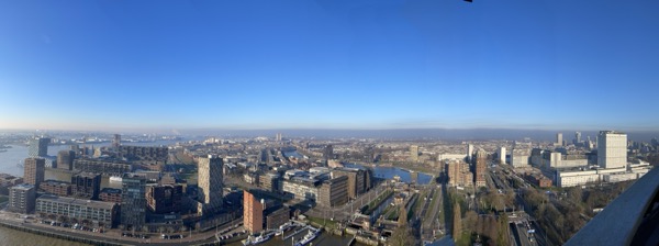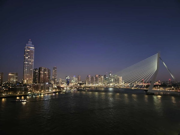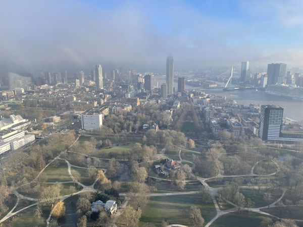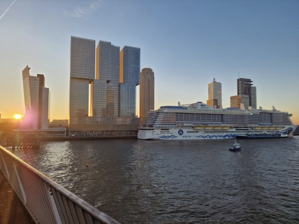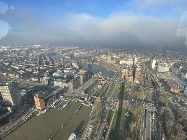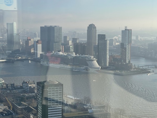 Letzter Halt auf unserer Reise war Rotterdam. Hier hatten wir mehrere kleine Highlights geplant. Am Vormittag hatten wir direkt zum Anleger ein Wassertaxi gebucht (Online per App). Mit dem Wassertaxi ging es zum Europaturm. Hier stand eine Besichtigung auf dem Plan. Tolle Aussicht und beeindruckende Aussicht. Ein Kaffee im Restaurant auf dem Turm durfte nicht fehlen.