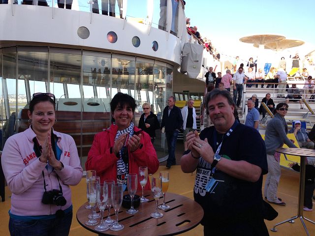 Da wir den Ablauf beim einchecken schon kannten, konnten wir ganz relaxt an Bord gehen. Wir brauchten uns am Flughafen und beim Schiff um nichts kümmern, da wir das Anreisepaket über AIDA gleich mit gebucht hatten. Wir können das nur empfehlen, Bahn zum Zug ist enthalten, Scouts und Busse stehen am Zielflughafen bereit und leiten einen den Weg. Gepäck wird vom Bus durch AIDA Mitarbeiter direkt zur Kabine gebracht. Einfach nur toll und der Urlaub beginnt schon bei der Anreise :-)