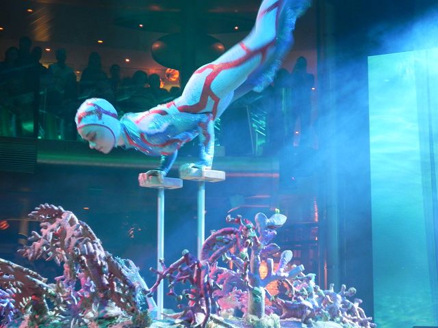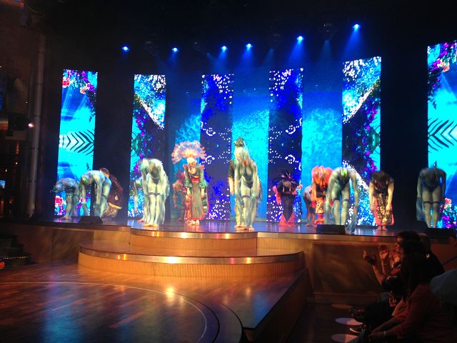 Jedes AIDA-Schiff hat seine spezielle einmalige Abendshow. Auf der AIDAmar ist das die Show Kauri, die uns schon bei der ersten Tour im Januar fasziniert hatte.