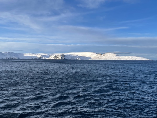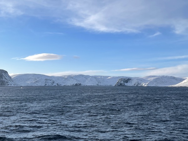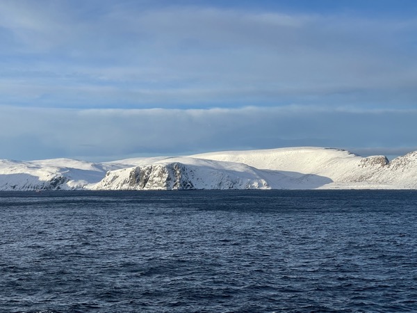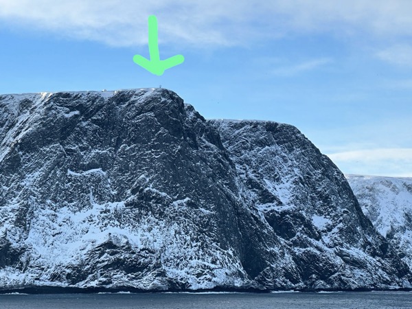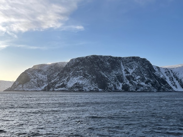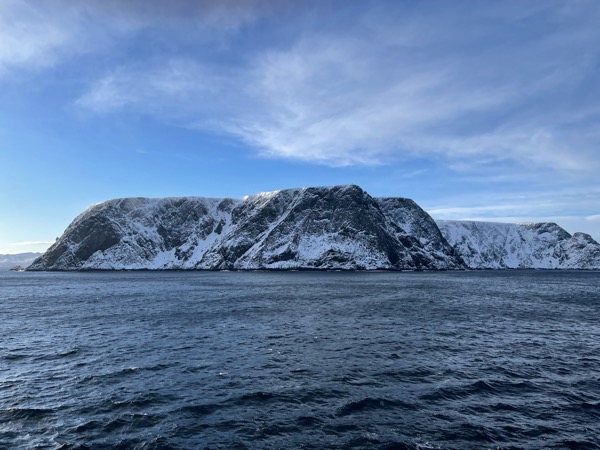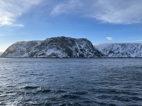 Leider machte uns das Wetter einen Strich durch die Rechnung. Normalerweise wären wir in Honningsvåg zum Nordkap gefahren. Da der Wind aber zu stark war, war ein Anlegen nicht möglich. Der Kapitän ist aber so gefahren, dass wir das Nordkap von der Seeseite aus, sehen konnten.