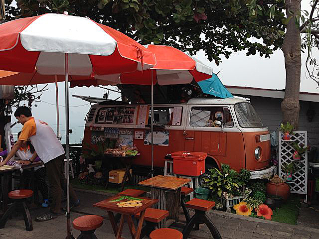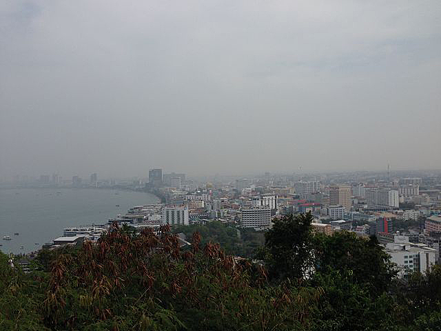Unser Bus blieb vor einer Anhöhe auf dem Parkplatz stehen und wir erstiegen den Berg zu Fuß. Oben angekommen, hatten wir die perfekte Aussicht auf Pattaya. Die einzelnen Gebetshäuser sind malerisch angelegt.