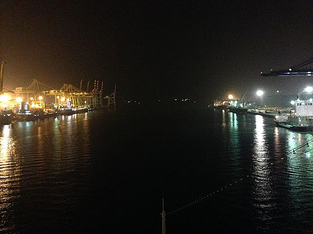Die AIDAaura lag Übernacht am Pier. Unser Liegeplatz Hiep Phuoc ist von der Aussicht nicht beeindruckend, da es ein Containerterminal ist. Um 14 Uhr wurde der Anker eingeholt und unsere letzte Fahrt auf dieser Reise begann. Die AIDAaura schlängelte sich den Saigon River flussabwärts zurück ins chinesische Meer.