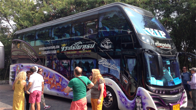 Nach kurzer Zeit am Treffpunkt ging es auch schon los. Die typischen thailändischen Busse warteten schon auf uns. Nicht nur der Außenhaut der Busse ist bunt, sondern auch der gesamte Innenbereich.