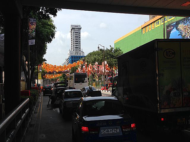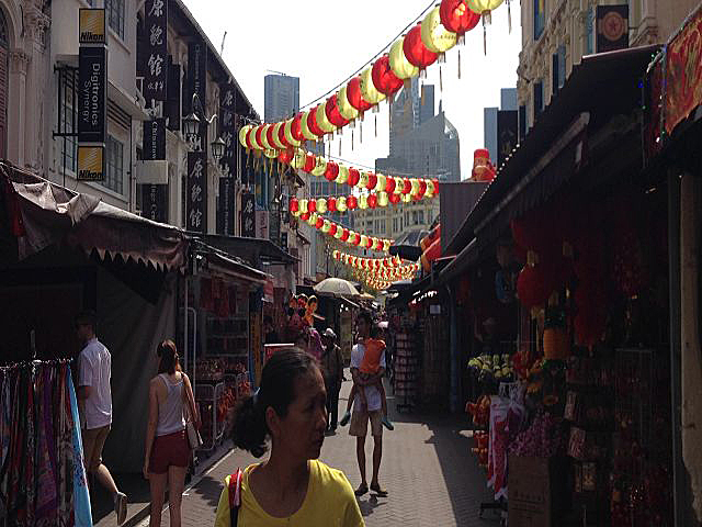 Bis das Schiff sicher am Pier des Kreuzfahrtterminals lag, verging dann noch einmal 60 Minuten. Vom Terminal bis zur Innenstadt sind es nur wenige Minuten mit der Bahn oder dem Bus. Nachdem wir durch den Zoll waren, wollten wir ursprünglich erst einmal nur im angrenzenden Shoppingcenter bleiben, da es Petra und mir nicht gut ging. Uns ging es dann aber doch besser und so tauschten wir erst einmal Geld und kauften anschließend vier Tagestickets für die City Sightseeing Busse. 33 Singapur Dollar pro Person für 24 Stunden. Eigentlich sollte ein Shuttlebus direkt am Hafenterminal starten, der uns dann zu den eigentlichen Routen der Sightseeing Busse brachte, leider konnten wir auch nach 30 Minuten laufen keinen finden. So wurde kurzentschlossen ein Taxi angehalten, dass uns direkt nach Chinatown (Eu tong Sen Street) fuhr ($6,-).