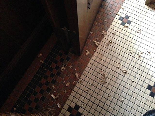 Richtig untypisch für die sauberste Stadt der Welt, in der man nichts auf den Boden werfen darf, ist der Verzehr der Nüsse in der Bar. Die Schalen werden einfach auf den Boden geworfen und so sieht es auch aus.
