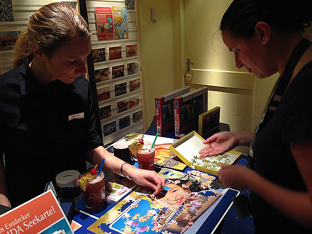 Kurzerhand wurden wir zum mit puzzeln eingeladen und so puzzelten wir dann zu viert. Wir hatten wirklich tolle Gespräche gehabt über Gott und die Welt. Vielen Dank an Katja Sims und Dominic Huber.