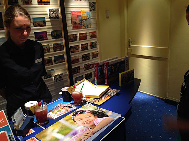 Das unser Schiff über Nacht in Singapur lag, nutzen viele Passagiere die Gelegenheit und verbrachten den Abend in der Stadt, somit war das Schiff war fast leer. Dadurch erlebten wir aber eine kleine Besonderheit. Beim Bummel über das Schiff erreichten wir die Fotogalerie und sahen dem Fotomanager und eine weitere Mitarbeiterin beim Fotopuzzeln.