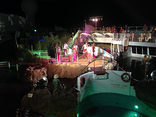 Das AIDA Show Ensemble führte eine tolle Show bei immer noch 27 Grad auf.