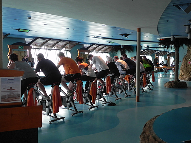 Es war ein sehr kuchenreicher Tag und somit stand der Nachmittag ganz im Zeichen der Erholung auf dem Pooldeck. Naja fast. Heute gab es noch 60 Minuten Indoor Cycling und das war ein Muss für mich.