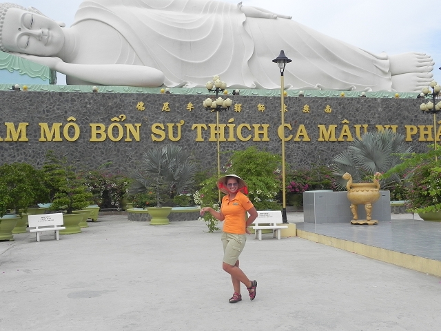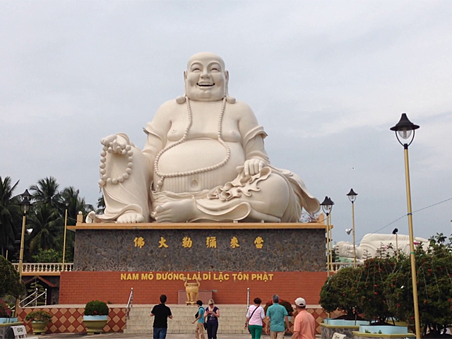Nun hieß es wieder rauf aus Boot und zurück zum Bus. Nach 20 Minuten Busfahrt erreichten wir eine Pagode mit dem "dicken happy Buddha".