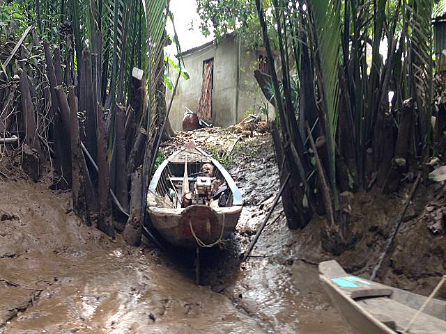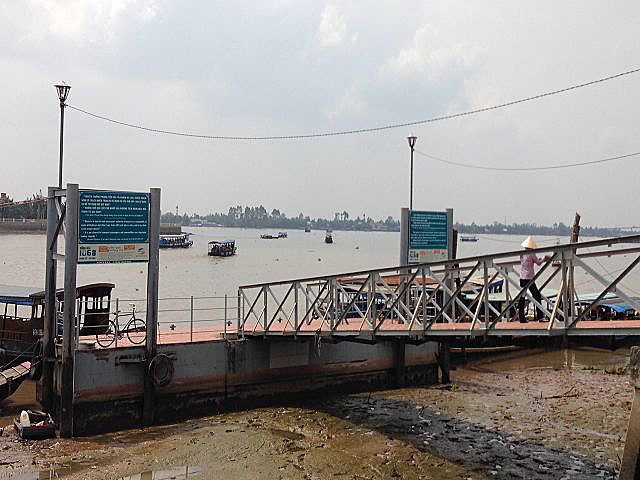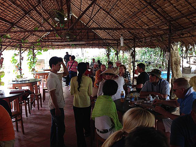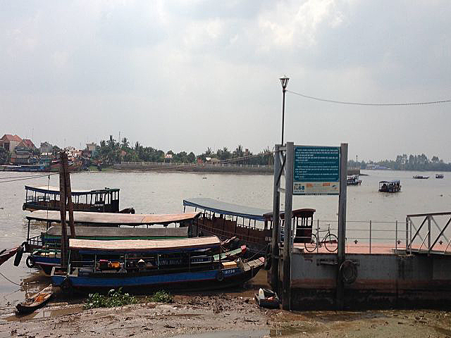 Unser Ausflug führte kurz durch die Stadt und weiter über die Autobahn, entlang den ganzen Reisfeldern. Nach 2 Stunden erreichten wir unser Ziel am Mekong Delta. Hier hieß es nun umsteigen auf ein landestypisches Boot, dass uns über den Fluss zu einer kleinen Insel brachte. Der Mekong Delta dient hier als Lebensader und vieles läuft auf dem Fluss ab. Fischzuchten, Transportschiffe und vieles mehr sind zu entdecken. Der Fluss selber lädt aber überhaupt nicht zum baden ein.