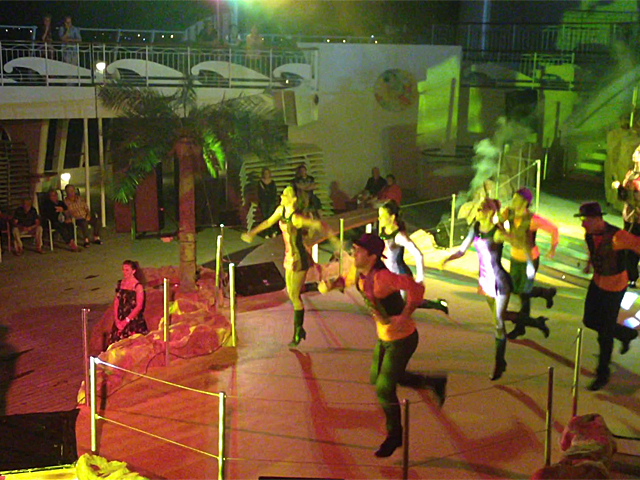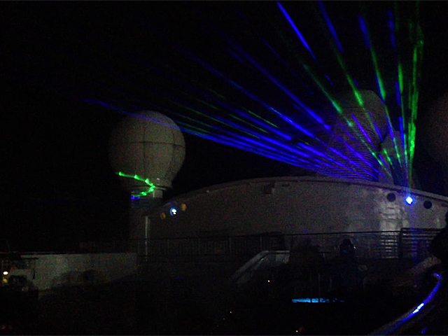 Abends stieg die 60./70. Party auf dem Pooldeck, vorher wurde natürlich der traditionelle Abend-Cockail in der AIDA-Bar eingenommen. Mit toller Laser-Show.