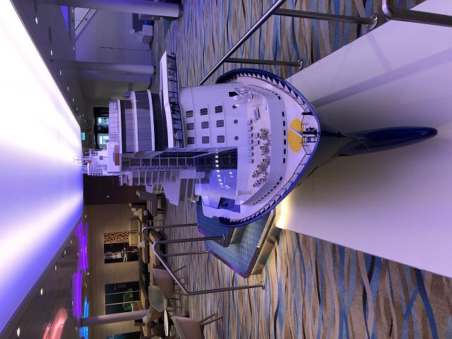 Freitag war unser 1. Seetag und es ging weiter mit der Schiffserkundung. Die Spieleecke mit 6 Playstation und Kicker (alles kostenfrei) durch die Shoppingarea bis zur Bibliothek.