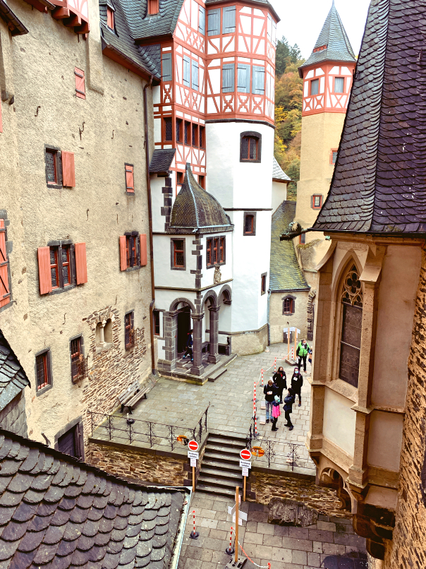Burg Eltz ist seit über 850 Jahren im Besitz derselben Familie – ein echtes Stück lebendiger Geschichte. Bei einer Führung durch die prachtvollen Räume bekamen wir faszinierende Einblicke in das mittelalterliche Leben. Besonders beeindruckend waren die detailreichen Holzdecken, antiken Möbelstücke, kunstvollen Wandteppiche und natürlich die Waffensammlung.