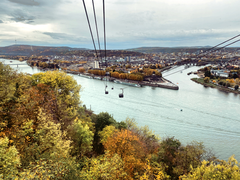 Ein echtes Muss bei einem Koblenz-Besuch ist die Fahrt mit der Seilbahn über den Rhein zur Festung Ehrenbreitstein. Die Kabinen gleiten fast lautlos über den Fluss und bieten eine atemberaubende Aussicht auf das Deutsche Eck, die Altstadt und das Umland. Oben angekommen, erwartete uns die riesige Festungsanlage mit spannenden Ausstellungen, historischen Einblicken und einem fantastischen Blick über die Stadt.