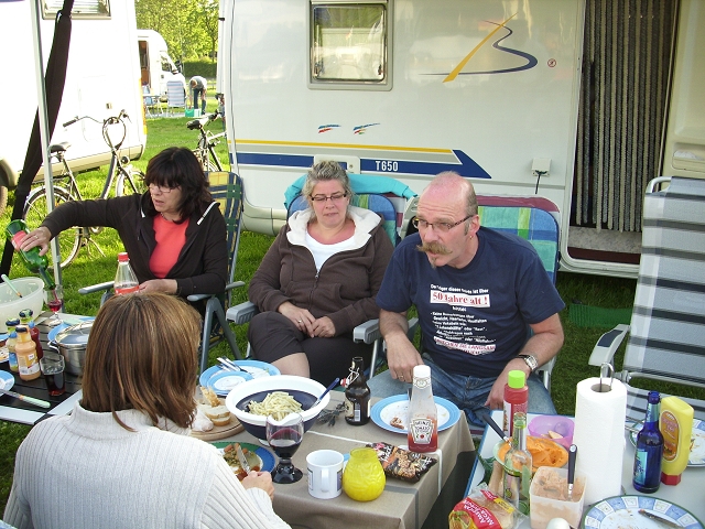 Wir waren eine super lustige Truppe und haben das gesamte Wochenende nur Spaß gehabt. Alles super liebe und nette Menschen. Der Platz ist sehr großzügig und wir können alle unsere Wohnmobile stellen, wie wir es möchten (auf der Wiese). Der Platzwart Thomas ist total freundlich und hilfsbereit. Zur selben Zeit war ein Treffen von Wohn-Bussen. Wir hatten das Glück und konnten uns diese Fahrzeuge von der Nähe anschauen und teilweise auch von innen. Das Wohnmobil von Johnny. Sein Wohnbus und er selber sind absolut einmalig auf dieser Welt. Lichterketten und Stromleitungen wohin man schaut.
