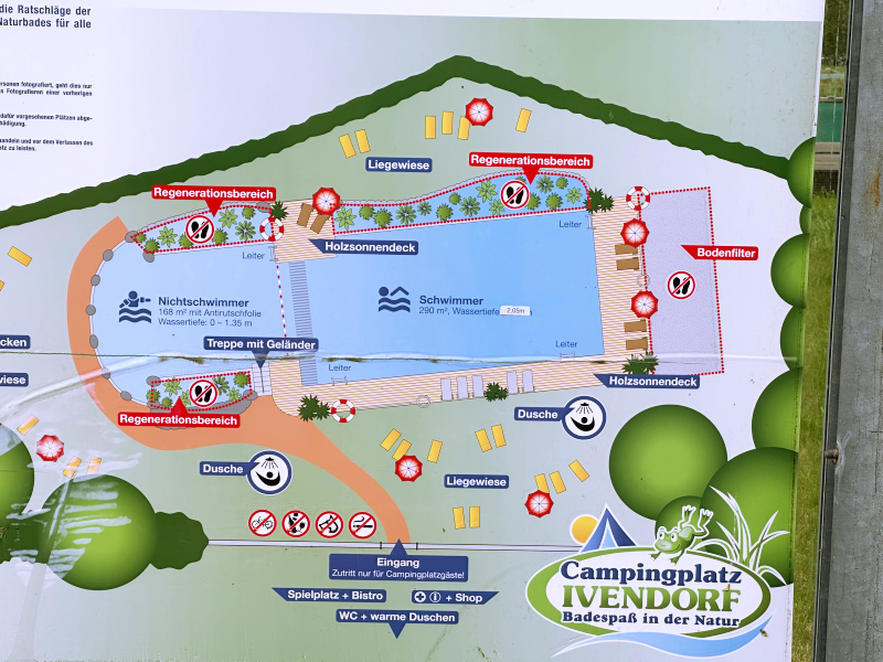 Auf dem Campingplatz angekommen wurden wir direkt an der Einfahrtsschranke herzlich begrüsst und die Einweisung war super: „Ihr habt gebucht? Super, dann fahrt direkt rauf zum Weg Nummer 1 und sucht euch einen tollen Platz aus. Anschließend kommt ihr einfach zu Anmeldung zur Rezeption.“