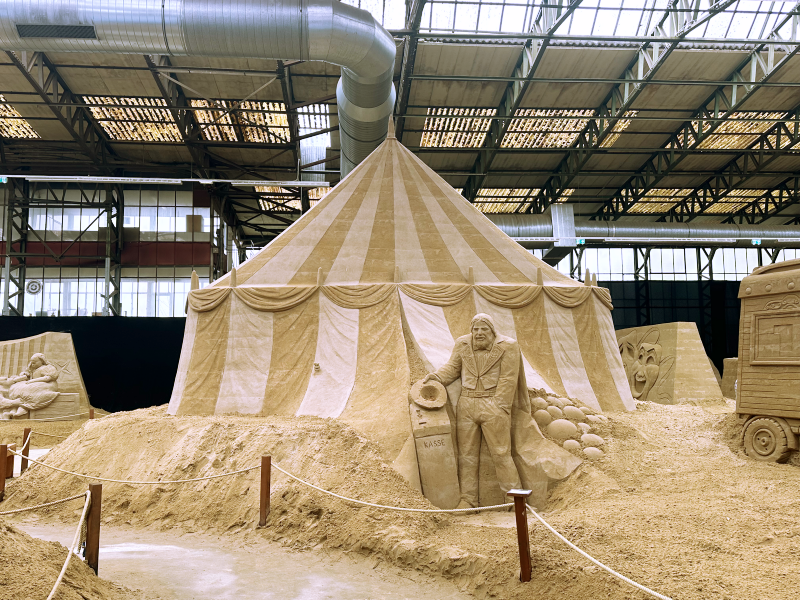 Am Samstag stand am Morgen die Ausstellung der Sandskulturen auf unserem Programm. Die Sandskulpturen-Ausstellung 2025 stand ganz im Zeichen des faszinierenden Mottos „Zirkus“. Besucher konnten eine beeindruckende Sammlung kunstvoll gestalteter Sandskulpturen bewundern, die das bunte und lebendige Flair eines Zirkus’ einfingen.