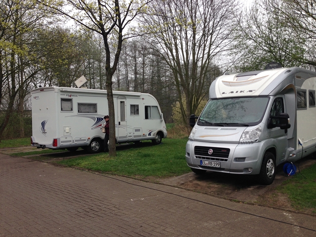 Die Stellflächen für die einzelnen Wohnmobile sind sehr großzügig bemessen. Die 16 Plätze (9x auf Pflaster / 7 auf Rasen) sind auch für große Fahrzeuge geeignet. Eine Übernachtung kostet pro Wohnmobil 5,- Euro und Stromkosten sind schon enthalten. Ver- und Entsorgung ist gebührenpflichtig.