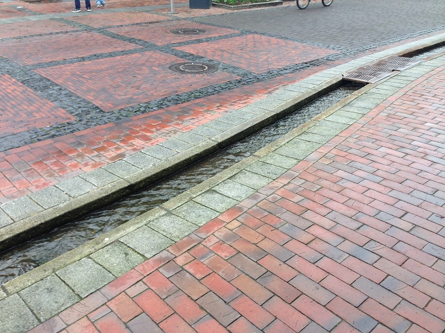 Also weiter Richtung City. Nächster Halt war das Fahrradgeschäft "Zweirad-Profi", das unsere Aufmerksamkeit weckte. Da wir uns aktuell für E-Bikes interessieren, suchten wir den Laden auf um uns etwas umzusehen. Nach kurzem planlosen umschauen, kam auch schon ein Mitarbeiter auf uns zu. Wir sagten ihm unser Anliegen und dann die freudige Überraschung. Obwohl wir sagten, dass wir nicht aus der Gegend kommen und nicht genau wissen, ob wir überhaupt E-Bikes kaufen wollen, bekamen wir eine super tolle Beratung. Der Mitarbeiter nahm sich fast 45 Minuten Zeit, erklärte uns die ganzen Unterschiede der einzelnen Motoren, Vorteil/Nachteile und wir machten auch noch diverse Probefahrten. Am Ende stellte sich heraus, dass der Mitarbeiter der Junior-Chef des Familenbetriebes ist und der Zweirad-Profi Büld drei Fachgeschäfte betreibt. Quer durch die Einkaufstraße verläuft ein kleiner Bach.