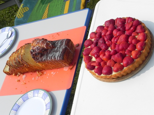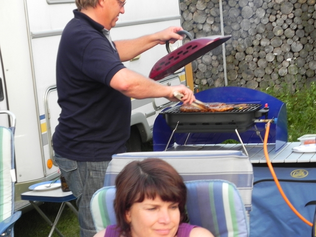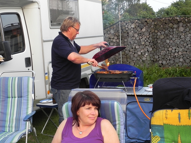 Am Abend gab es ein gemeinsames grillen, jeder hat einfach etwas auf den Tisch gestellt und es war kam ein großes tolles Buffet zustande. Nach dem Essen gab es zur "Einstimmung" selbstgemachten Marzipanlikör und Erdbeerlimes.
