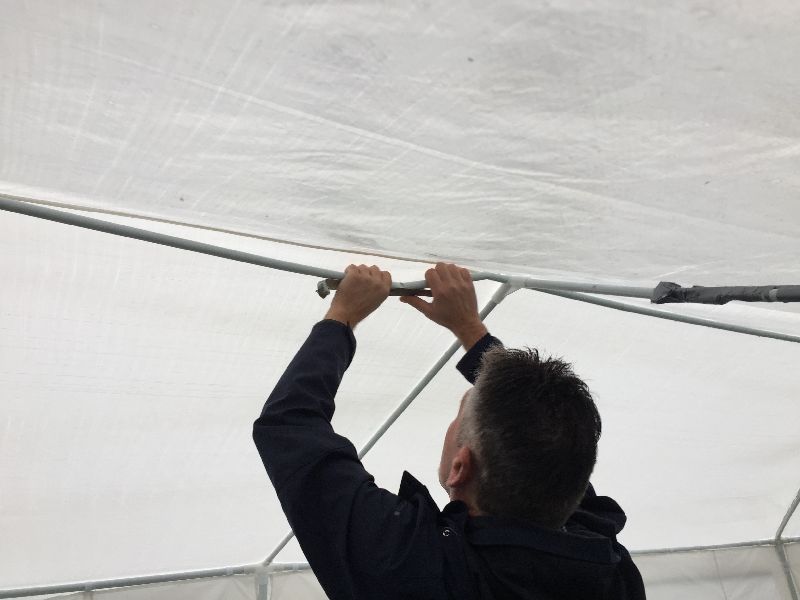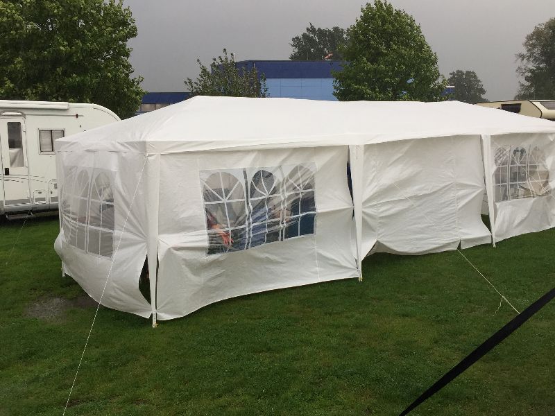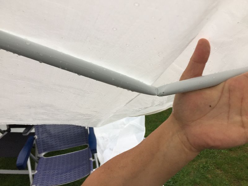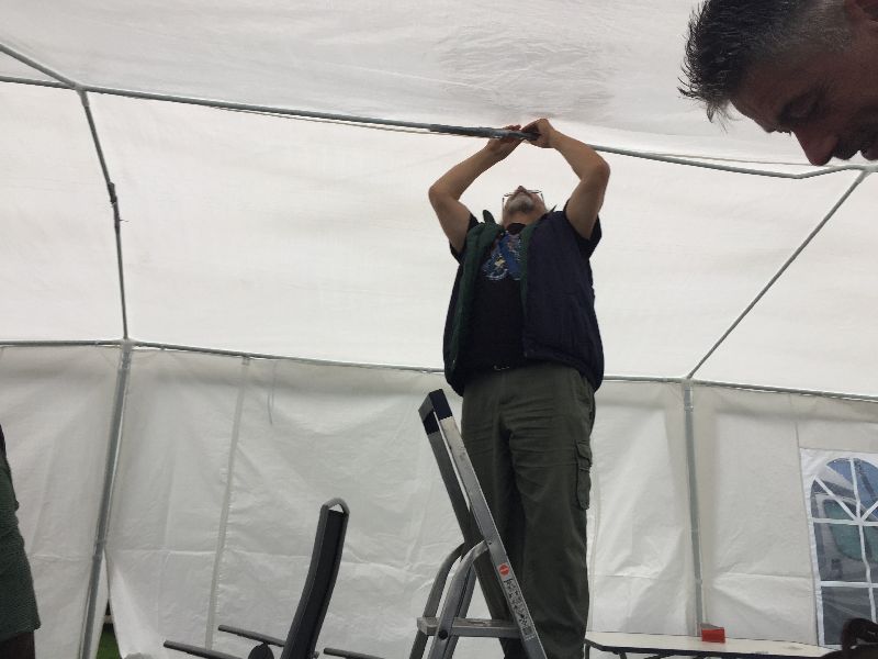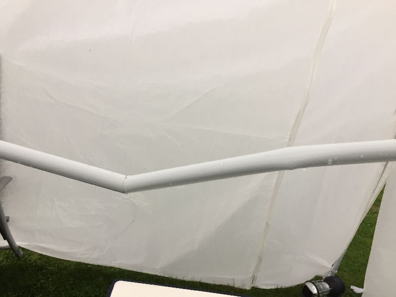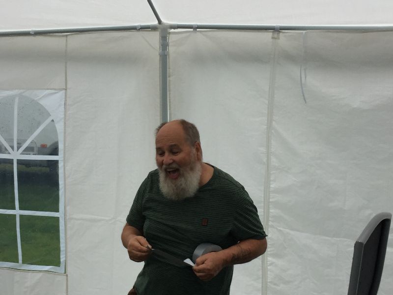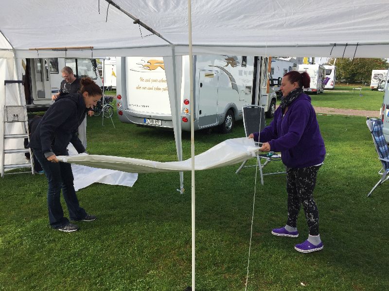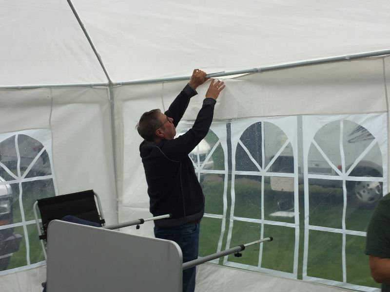 Das gekaufte Zelt entpuppte sich als minderwertiges Produkt. Durch den Regen und den Wind sind viele Stangen einfach gebrochen und abgeknickt. Aber für einen Camper sind das nur Herausforderungen und durch viele gute Ideen war das Zelt nach einer Stunde wieder geflickt und dicht.