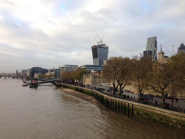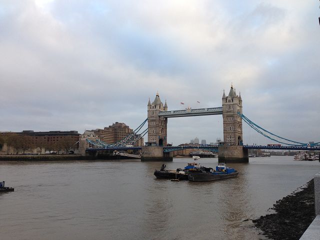 Mit der schwarzen Linie ging es vom Waterloo zur Embankment Station (eine Station) und hier wurde umgestiegen in die grüne Linie. Ausstieg Tower Hill. Kaum aus dem Untergrund am Tageslicht lag das Gefängnis direkt vor uns. Direkt hinter dem Gefängnis liegt der Tower und die Bridge. Wir machten einen kleine Fußmarsch über die Brücke und direkt an der Temse entlang, um die Brücke auch von etwas weiter erblicken zu können. Zurück über die nächste Brücke und rein in den Untergrund.