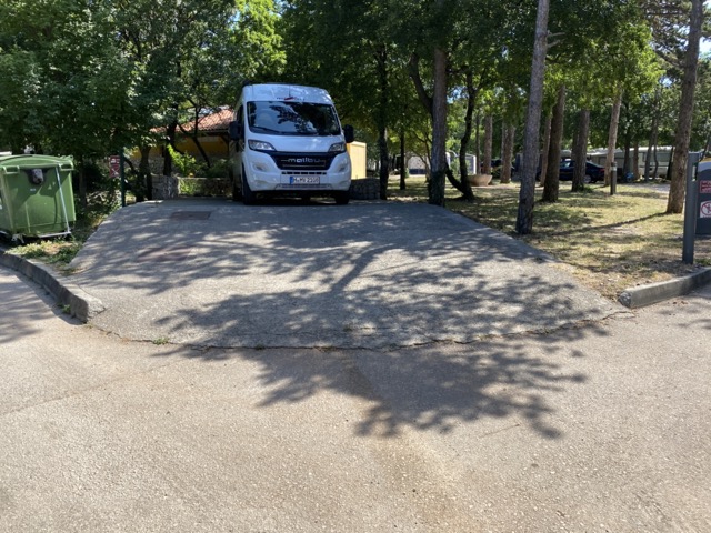 Nach 3 Tagen nahmen wir vom Campingplatz Ostro Abschied und Kurs auf unser nächstes Ziel, Pula. Bevor es aber losging, wurde natürlich noch Wasser abgelassen und das ist auf dem Campingplatz eine Herausforderung. Es muss mit dem Fahrzeug eine größere Rampe hochgefahren werden und die Bodenfreiheit war bei unserem Fahrzeug nur 1 cm. Hier besteht Verbesserungspotenzial.