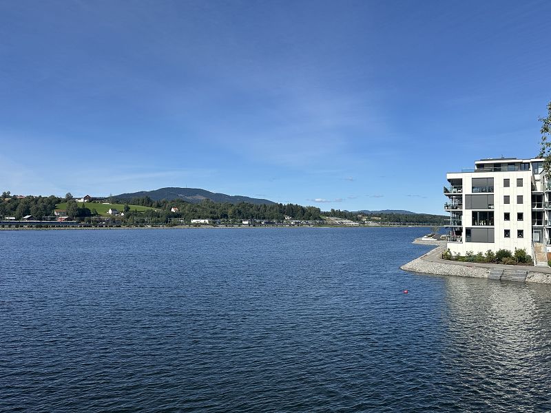 Das Wetter meinte es erneut bestens mit uns: strahlender Sonnenschein, klare Sicht und eine frische, angenehme Brise vom Wasser. So konnten wir gleich nach unserer Ankunft die schöne Umgebung genießen. Der Blick über den See (oder Fjord) ist atemberaubend – fast schon wie ein kleines Postkartenmotiv.