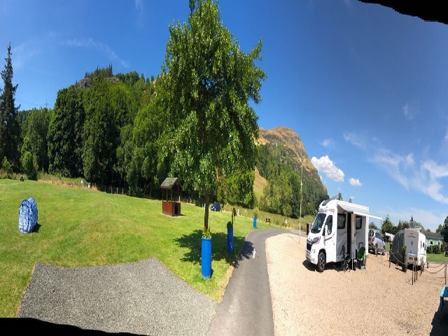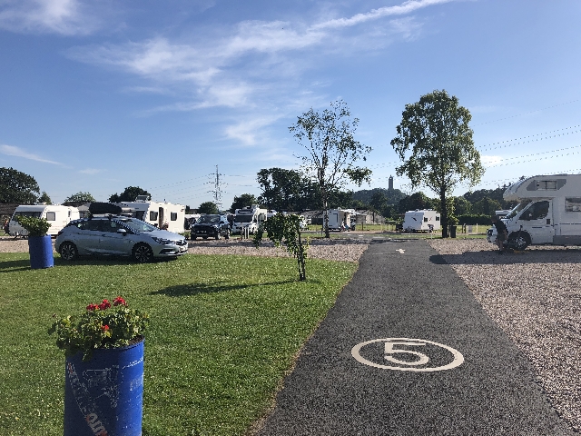 Nach 470 km erreichten wir den Campingplatz "Witches Craig" in Stirling. Den Platz hatten wir im voraus schon gebucht und wurden auch schon erwartet. Der Platz selber ist sehr idyllisch am Berg gelegen und die Plätze sehr großzügig. Der Campingplatz kostet pro Nacht mit Strom, Wasser und Duschen 26 Pfund. Kurze Zeit später hatten wir den Roller abgeladen und machten die erste Entdeckungstour. 3 km entfernt ist ein großer Supermarkt, der alle Wünsche erfüllt. Am nächsten Tag fuhren wir direkt zum Wallace Monument. Der im Jahre 1869 entstanden Turm ist zum Gedenken an William Wallace errichtet worden. Der Turm steht auf einem kleinen Berg und dieser ist zu Fuß leicht zu erklimmen. Es gibt aber auch einen Bus-Shuttle.